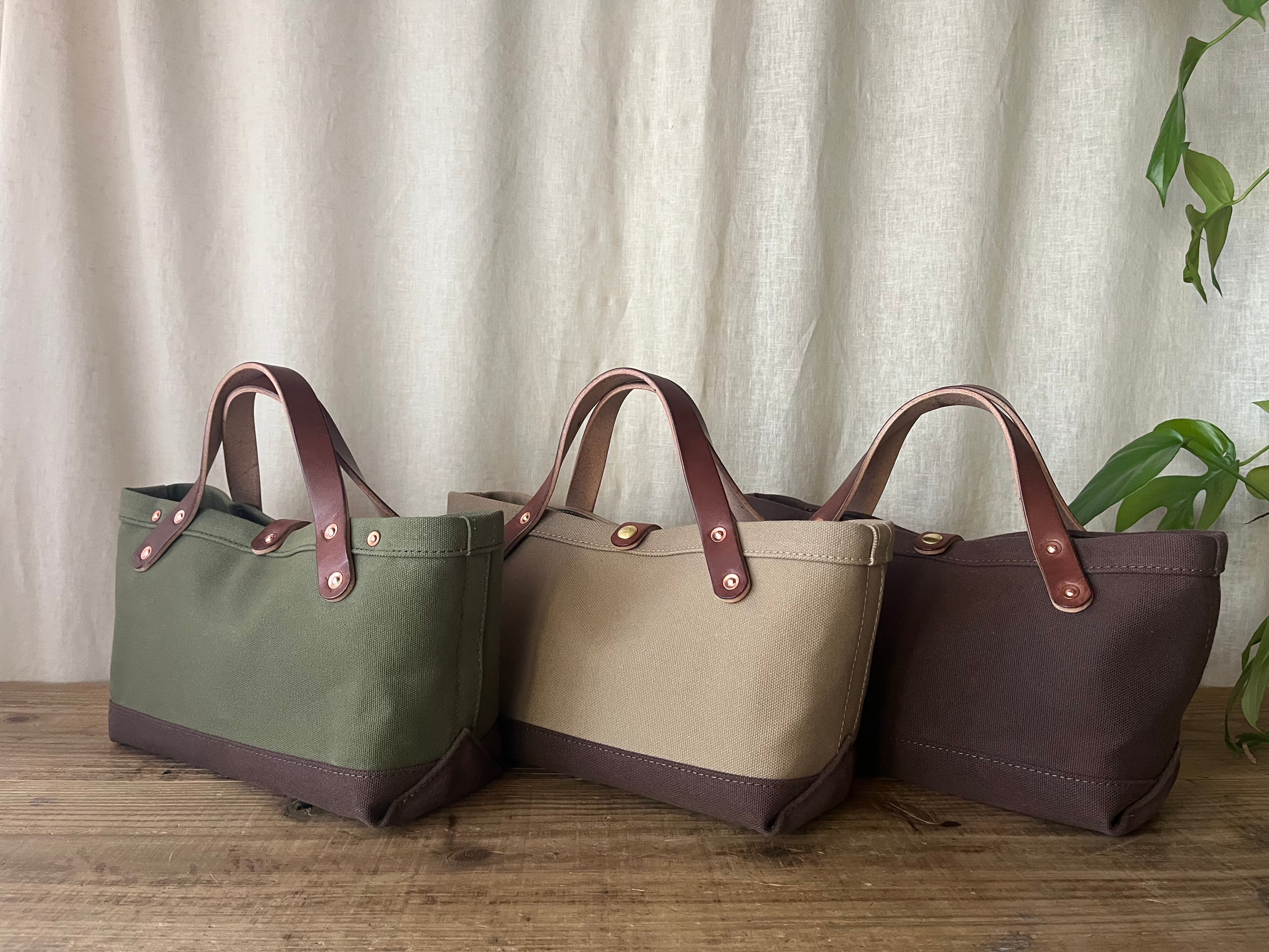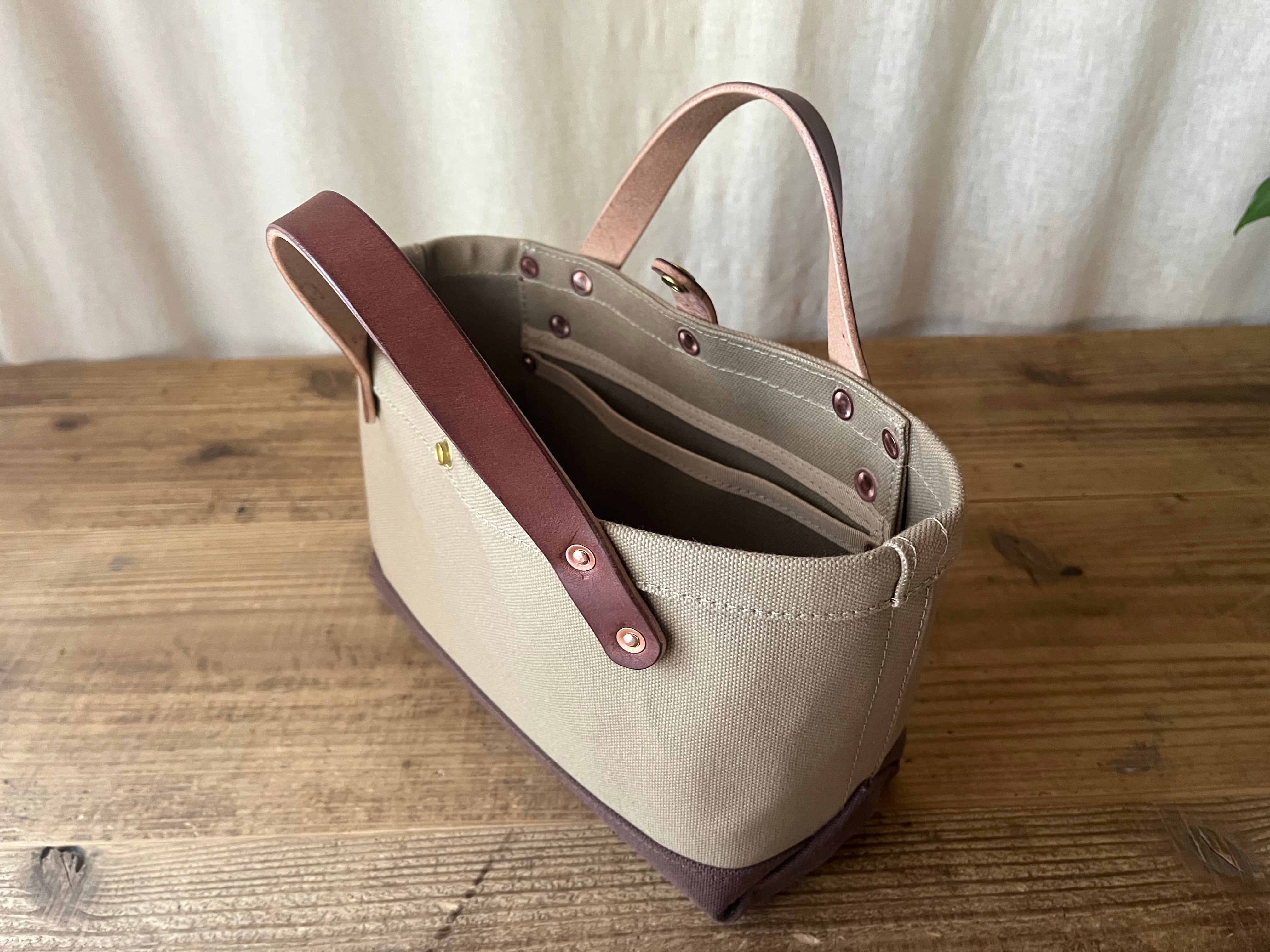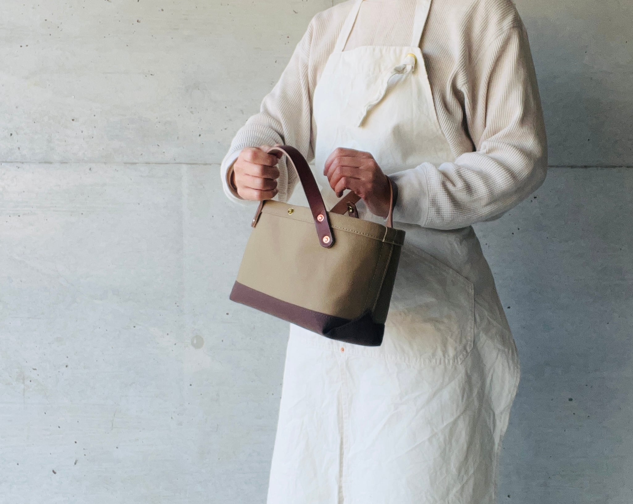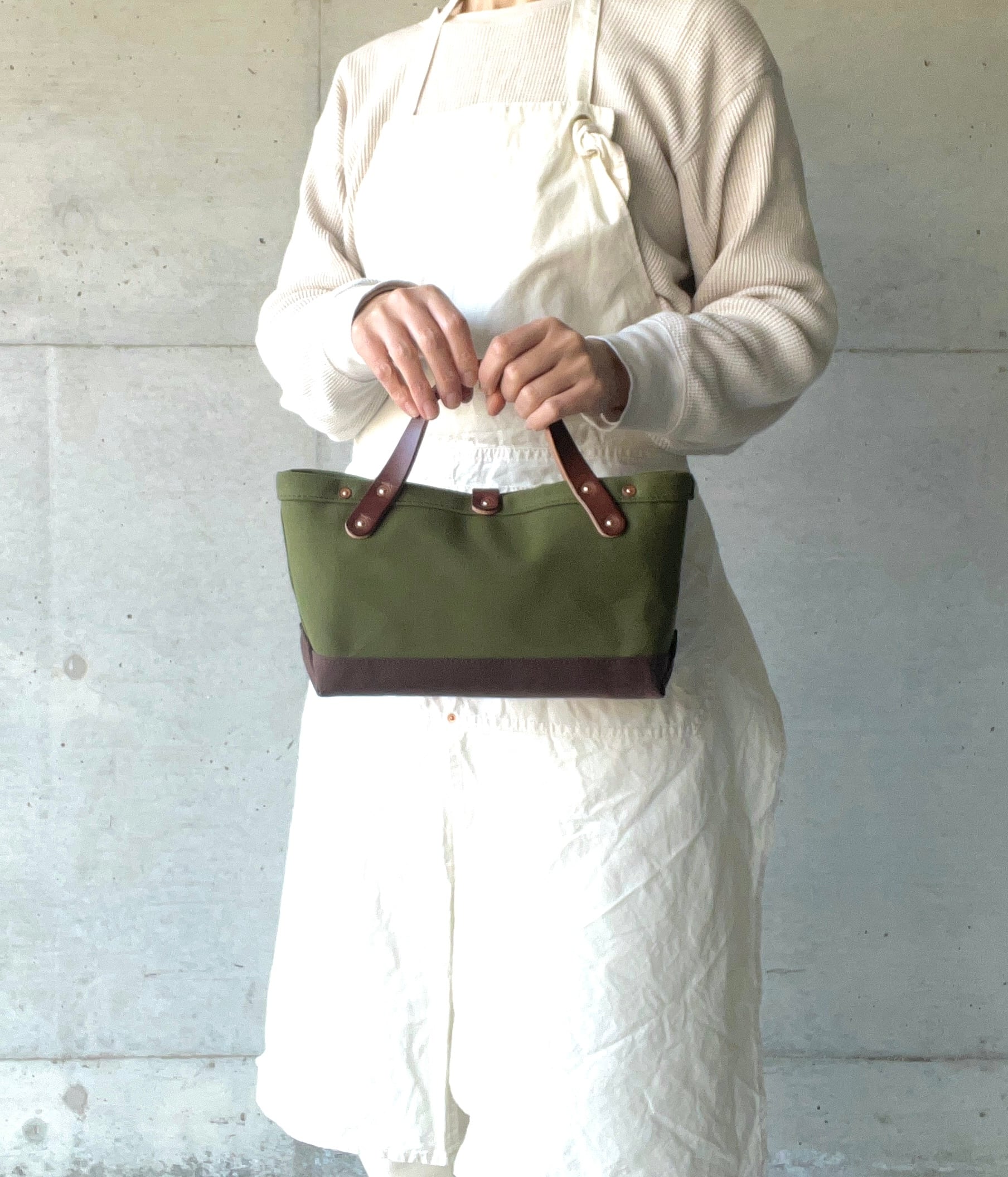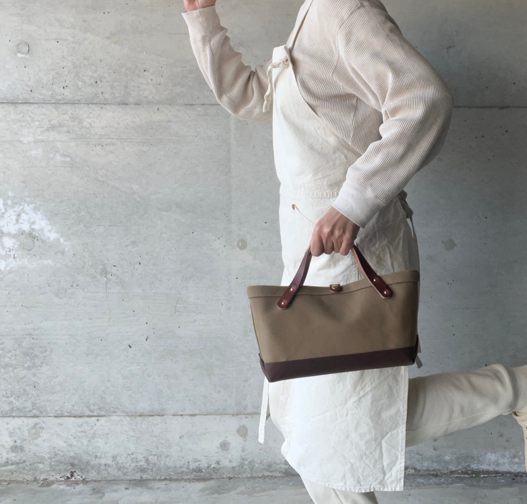 丈夫な6号帆布に更にパラフィン加工している為、使い始めは固めですが