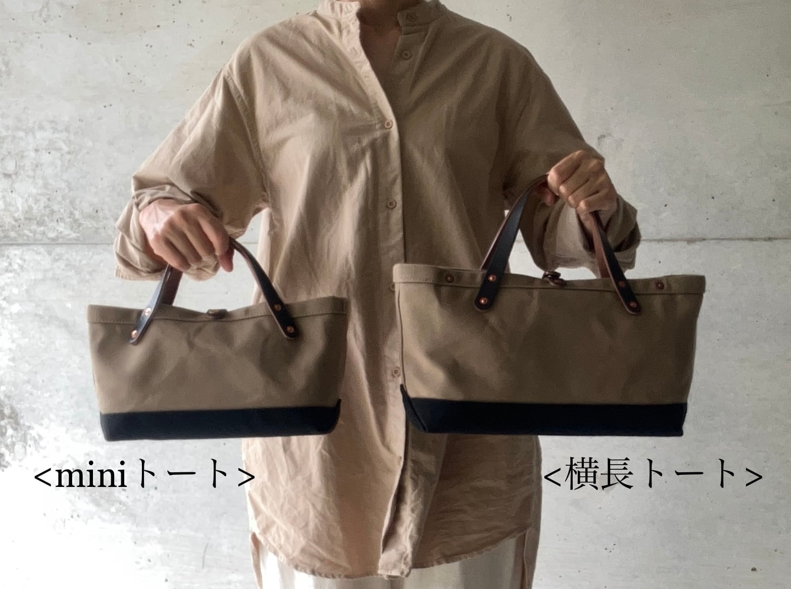 財布、携帯、鍵、小さめのポーチなど最低限必要な物を入れて頂けるminiサイズです。